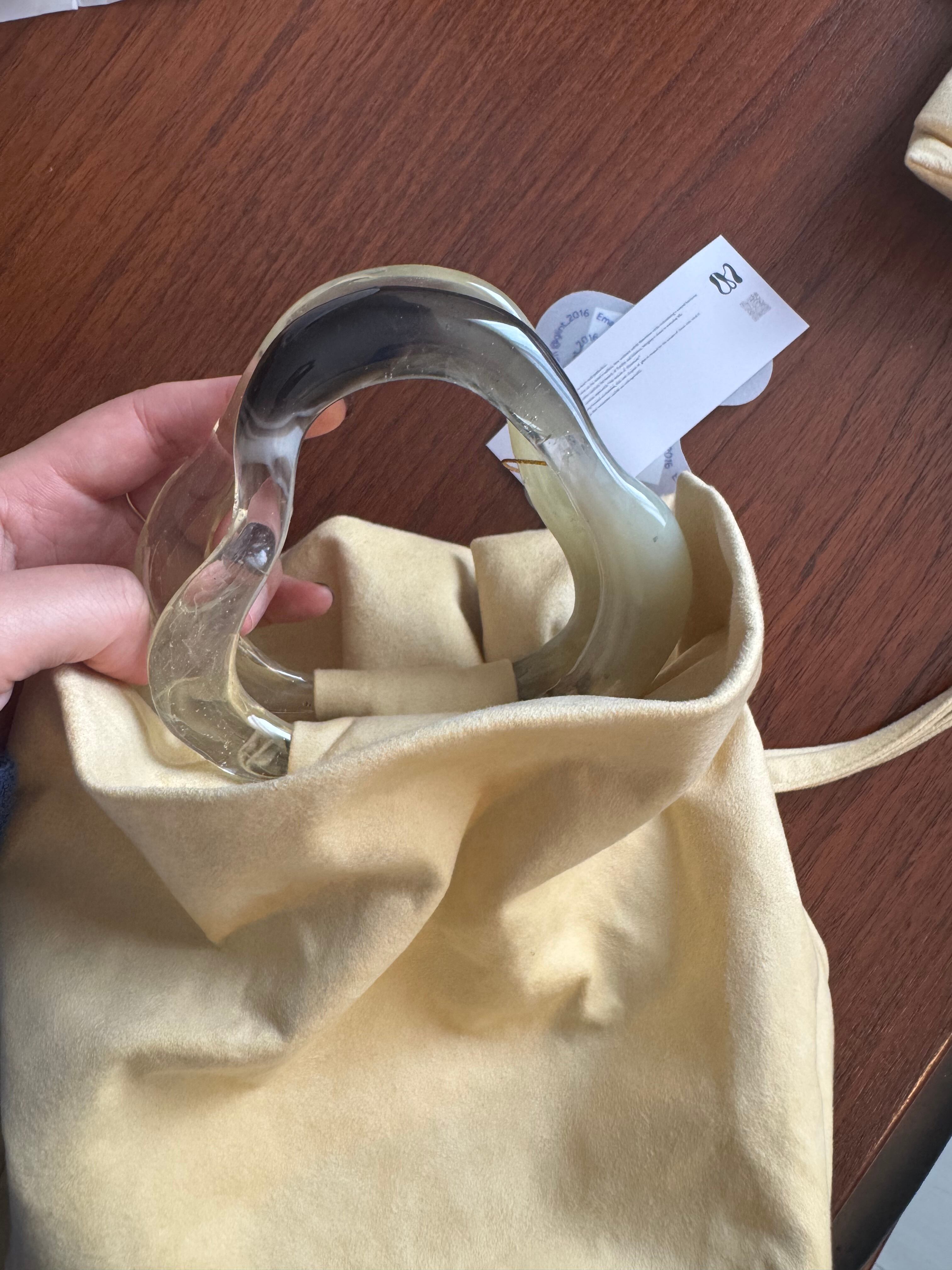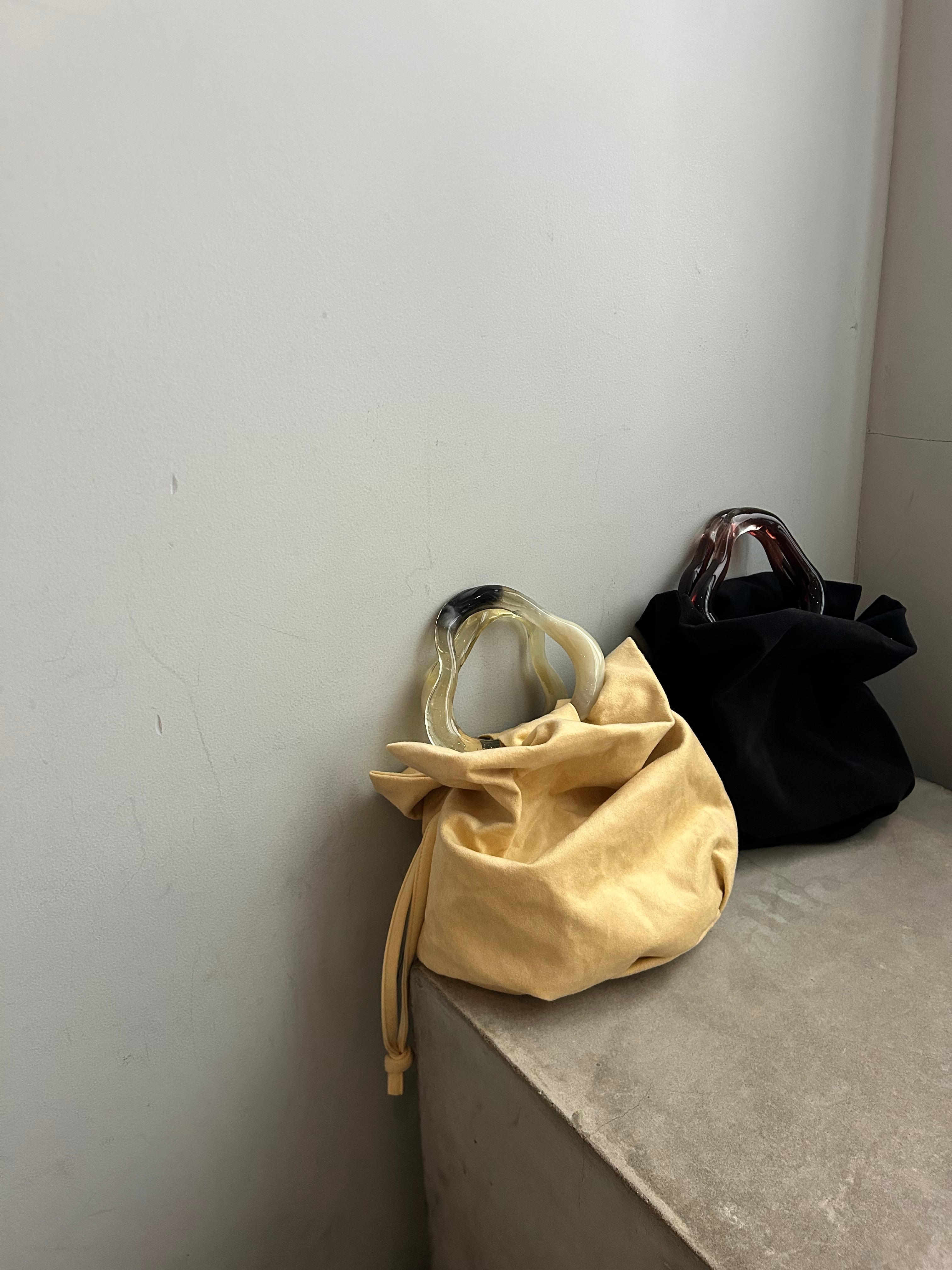 ゆるやかにアーチを描くフォルムと、透明感のある樹脂が印象的なmelt arch bag。
