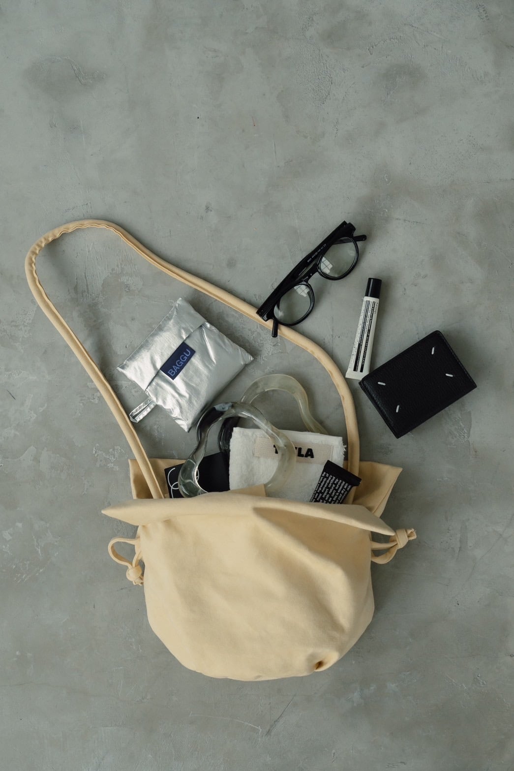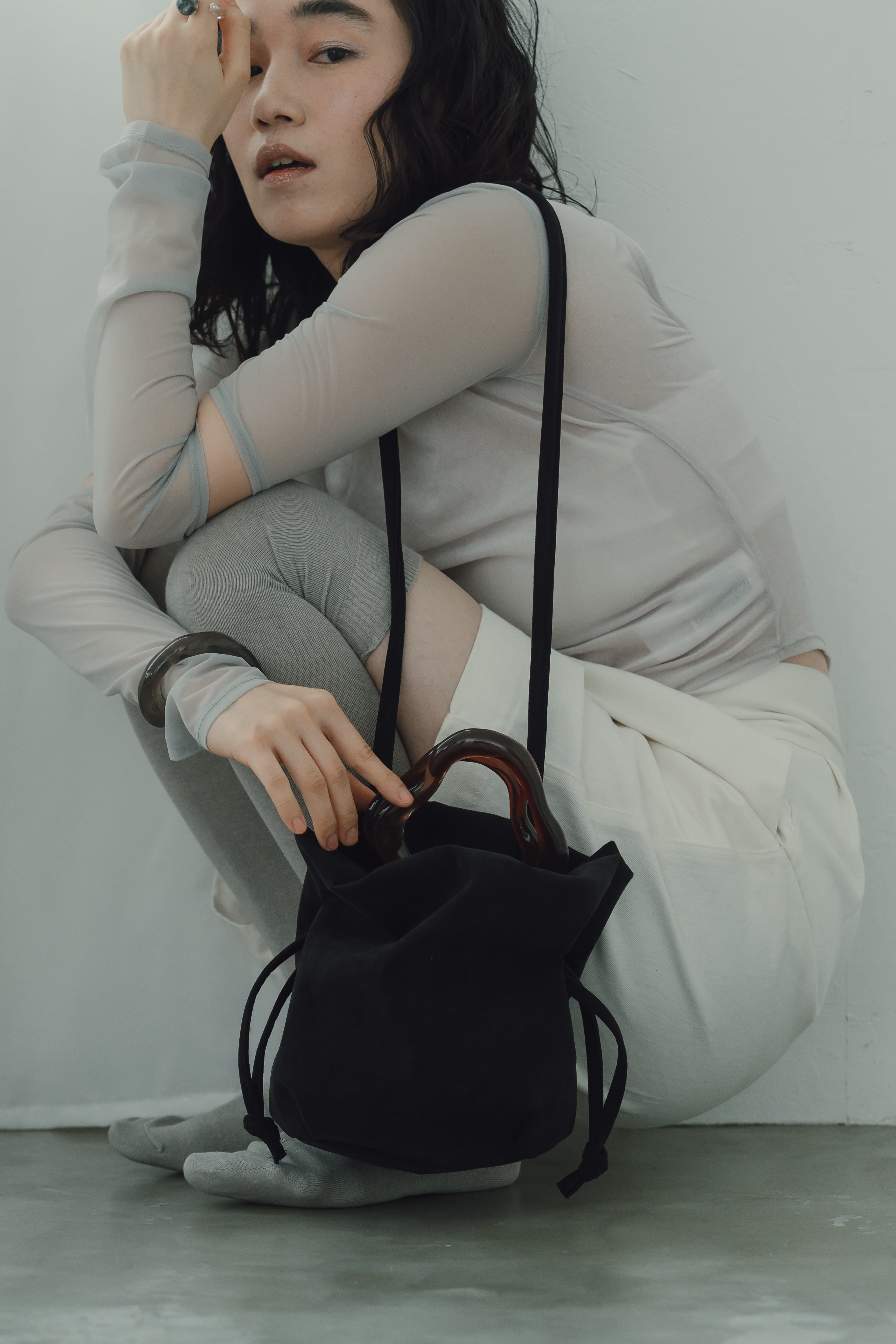 ・紐を収納し、樹脂リングを持ちハンドバッグとしても使えます。