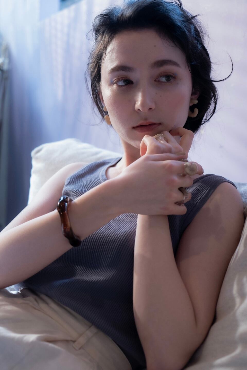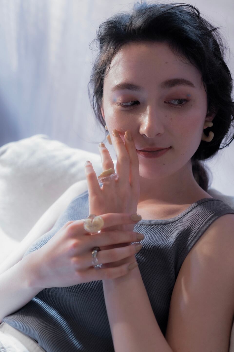 存在感のあるデザインですが、トップの曲線が指の柔らかいラインに馴染むアイテムです。